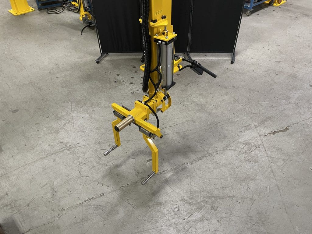 In regard to ergonomics and safety, the manipulator arm helps operators effortlessly pick up and rotate these parts during assembly. Intuitive levers give the operator control over the lift speed, parking brake, and part engagement. To ensure the parts are not dropped during operation, the operator must press both the “No Part” and “Safety” levers at the same time.