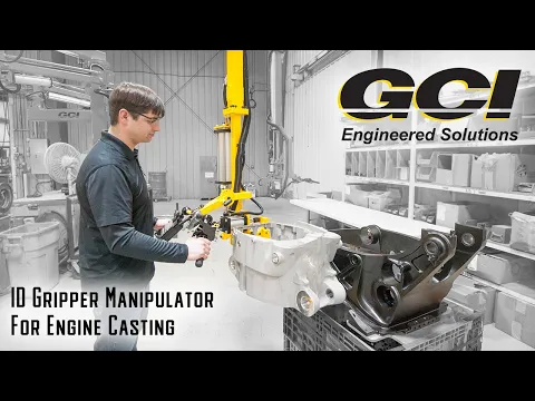 The M150S is one of our top selling material handling systems. This specific model was designed as an inside diameter gripper so as to pick the 60 lb engine casting up and be able to place it within its outer shell mount. There are rubber pads placed on the inside of the gripper so as to protect the casting. Our engineers included both a 110 degree pitch and roll ability to further it’s precise part placement.