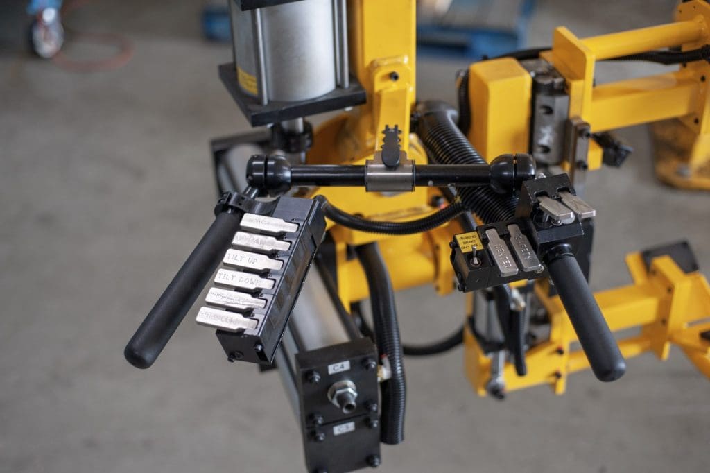 GCI Engineered Solutions operator showing their custom tire manipulator in use
