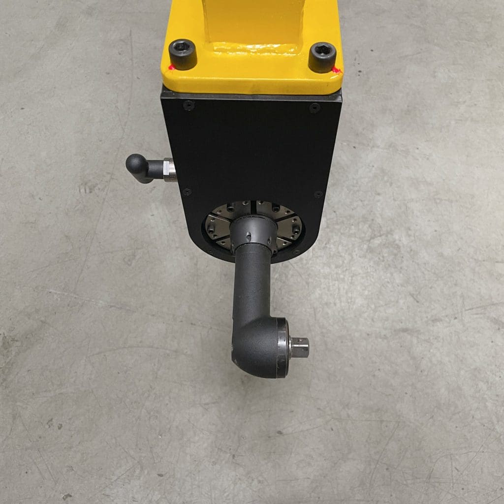 The client needed an ergonomic solution to tighten tractor frame bolts while preventing the operator from absorbing the reactive torque forces.